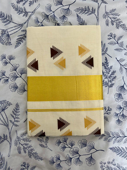 Black Geometric printed & Embroidered Kerala Cotton Saree
