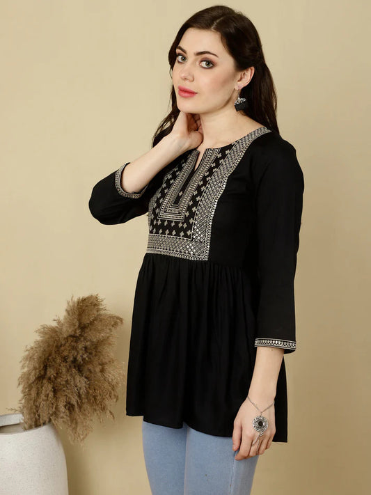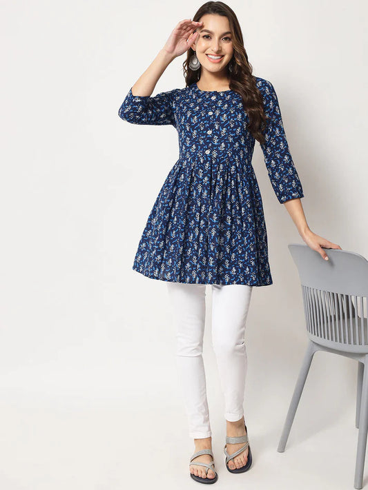 Jaipuri Cotton Ethnic Printed Navy Kurti Top (Top Only)